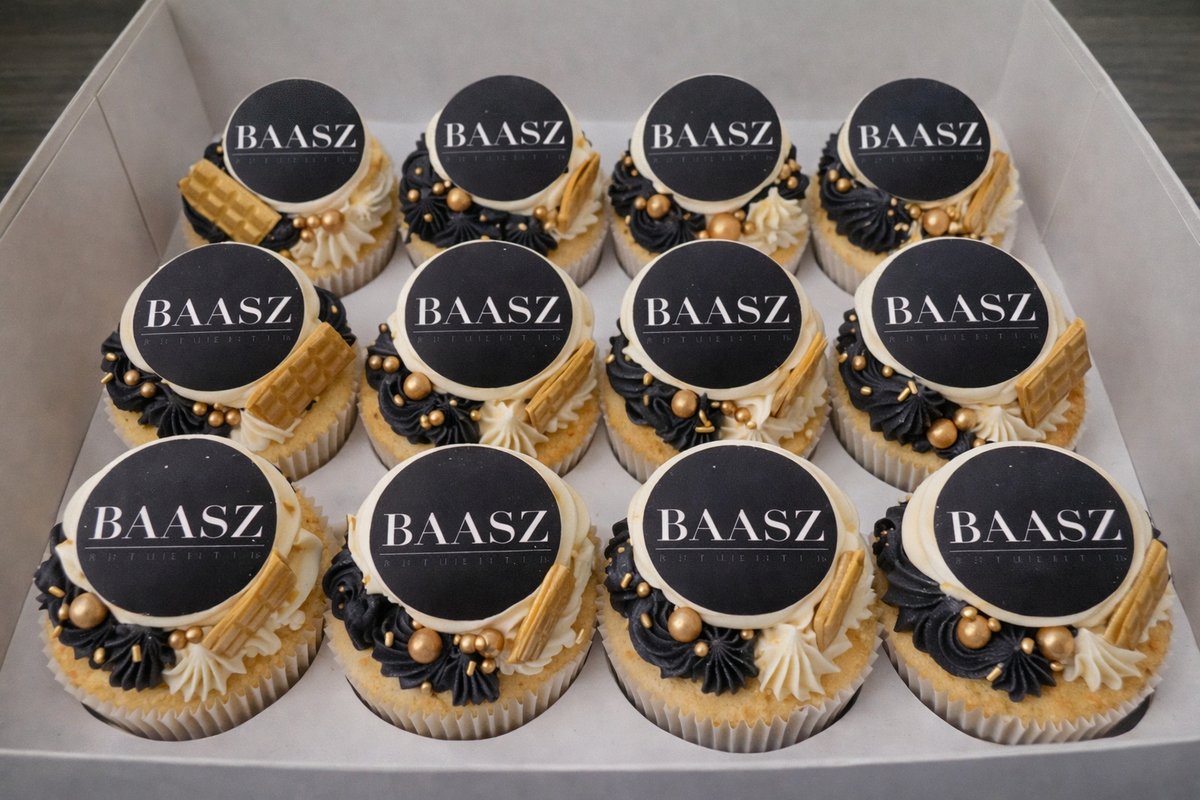 Elke mini cupcake wordt gedecoreerd met een laagje romige chocolade. Hierop plaatsen wij het logo, gedrukt op hoogwaardig eetbaar papier, dat stevig wordt bevestigd op de chocolade. Dit zorgt voor een strakke, professionele en luxe uitstraling – perfect voor bedrijfsevenementen, openingen, jubilea, beurzen en verjaardagen.