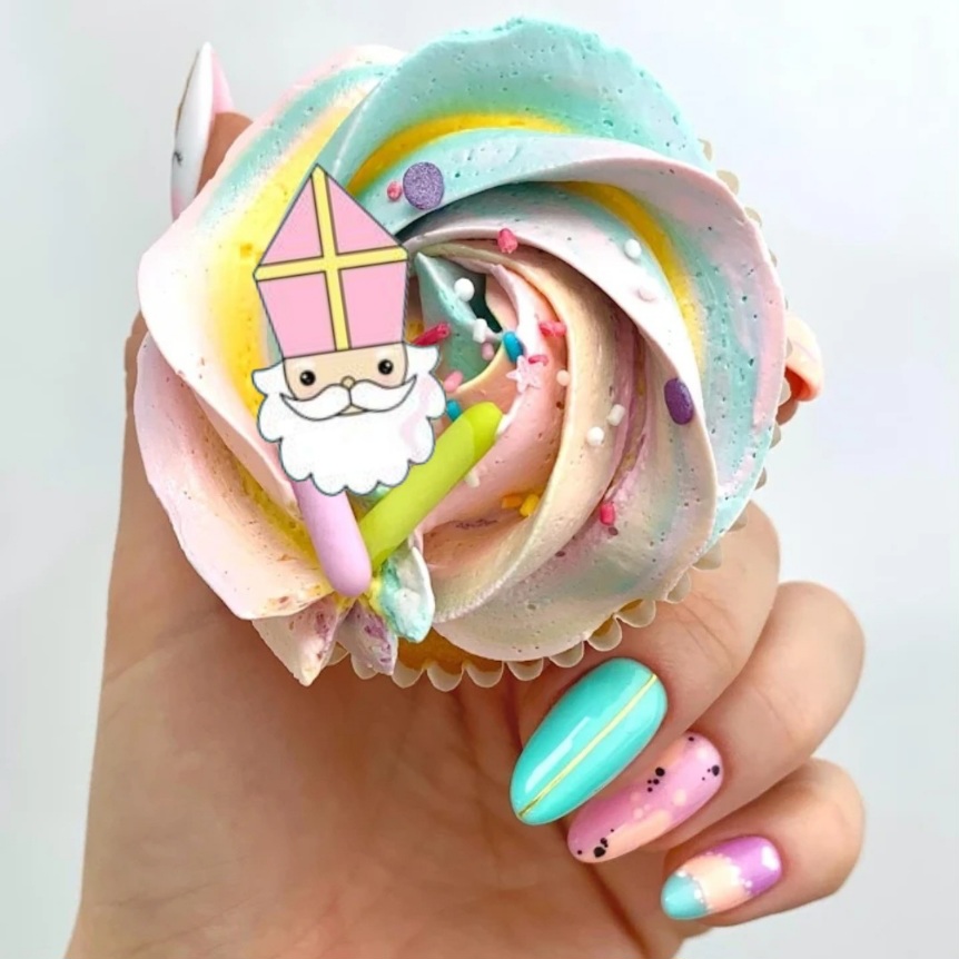 Afgewerkt met vrolijke strooisels en een schattige Sint-topper