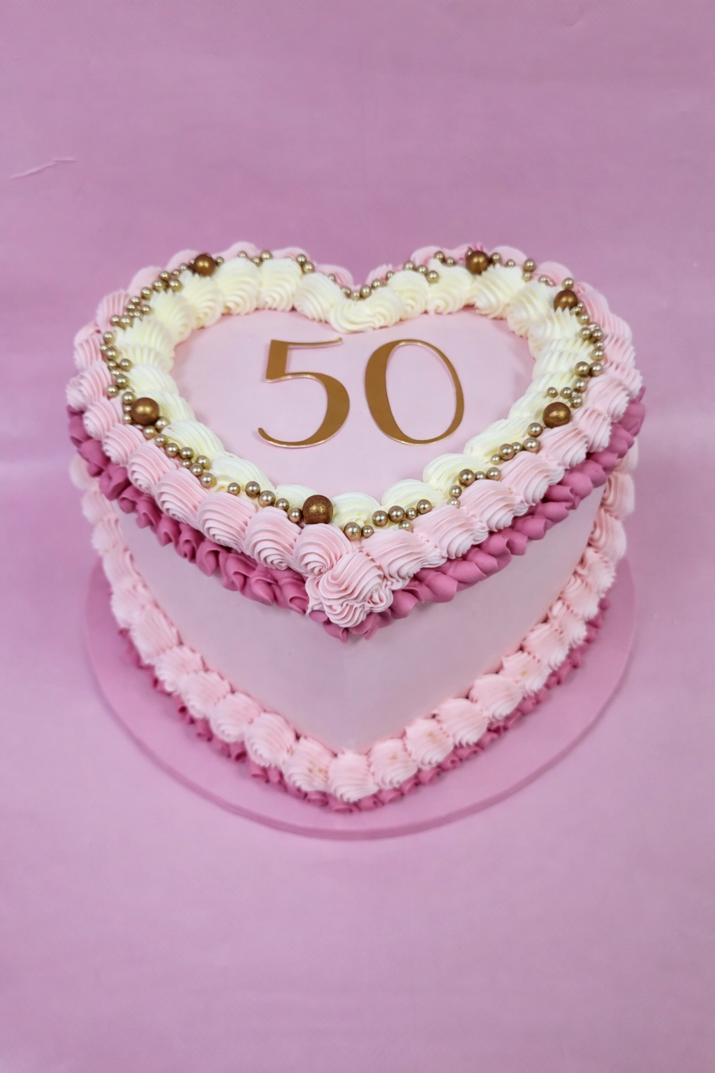 Vier een bijzondere mijlpaal met deze elegante hart taart. Perfect voor een 50e verjaardag, jubileum of speciale gelegenheid. Op maat gemaakt en af te halen in Winsum.